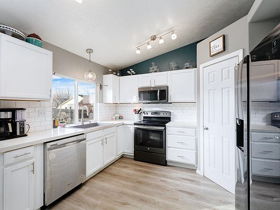 Come see this cutie in Kuna located right outside the hustle and bustle and on a quiet cul-de-sac. Perfect split floor plan with 3 bedrooms and 2 bathrooms. Enjoy your covered patio or evenings spent under the stars. Beautiful south facing kitchen allows ample light. Stainless steel appliances, tile backsplash and deep farmhouse kitchen sink. Full, paid off Solar Panels make your power bill 5$ a month! New Furnace and AC compressor in the last year. RV or recreational parking behind the fence with double roll out opening. Great Quiet Cul-de-sac and nice large corner lot with privacy. Come check it out.