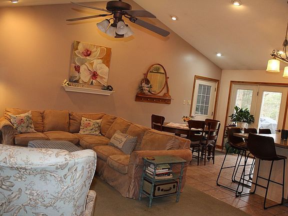 Fern enclosed stone paths welcome appreciative buyers to nature's solitude. 2005 custom built 1.5 story "stone faced charmer" on 15.6 secluded wooded acres. IMMACULATE condition! Quality amenities abound from deep drawer maple kitchen cabinets and pantry to the hardwood floors and 9' ceilings. Formal dining room design flows to open living room. Ambiance of living room stone/wood fireplace to LP gas log insert brick fireplace in master suite end of home. Pocket door master bath with real stone wall tub surround. Home is set up to host guests while owners can be in own den/bedroom area. Walk-out lower level offers opportunity for daylight sq ft entertaining. Paved macadam drive entry to home. Dream Home! A True GEM!