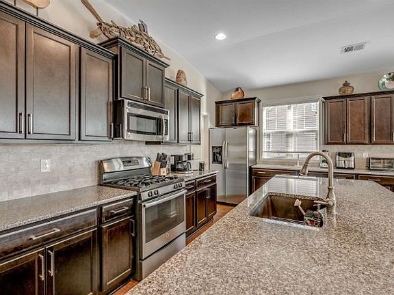 Shows like a model! This natural gas home is very well maintained and located in the gated community of the Bays of Prince Creek. Spacious kitchen with large island granite countertops, gas stove, stainless steel appliances, tile backsplash and big size pantry. Open floor plan, living area has wood floors and fireplace, picture frame moulding. Master bedroom has tray ceiling. Large screened in room overlooks the pond where you can relax and enjoy your favorite beverage. Amenities include two pools, clubhouse with gym, tennis pickle-ball courts, outdoor pavilion with fireplace and kitchen, basketball courts, volleyball and bocce ball.