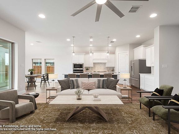 MOVE IN READY! Entry welcomes with 12-foot ceiling. Game room with French doors and 12-foot ceiling off coffered extended entry. Spacious family room with a wood mantel fireplace and wall of windows opens to kitchen and dining area. Kitchen features generous island with built-in seating space and 5-burner gas cooktop. Private primary suite includes bedroom with 12-foot ceiling. Dual vanities, garden tub, separate glass-enclosed shower and two large walk-in closets in primary bath. Abundant closet space and natural light throughout. Covered backyard patio. Mud room off two-car garage.