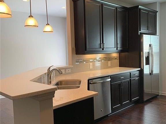 Stunning, filled w/ premium upgrades, 1 car garage, new townhome in Decatur! Gated community, TH features luxurious gourmet Kitchen w/ granite counters, 42 in' cabinets, new upgraded refrigerator & washer/dryer!! Breakfast bar overlooks living/dining area & fireplace. Hardwood floors throughout lower level, fenced back yard w/ patio, maintained by HOA! Master Bath features dual vanities, upgraded full tile bath, garden tub, & separate glass-enclosed shower built-in seat, 2 additional spacious bedrooms, w/ a gorgeous full bath. Easy access to 285/20