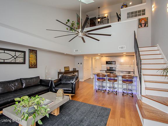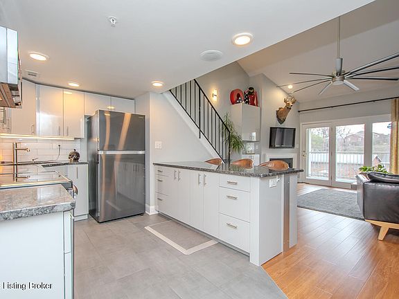 Beautifully remodeled condo in Crescent Hill! Unit boasts bamboo flooring, tile bathrooms, granite countertops, under cabinet lighting and an expanded bedroom closet. Custom cabinetry and pantry offer ample storage. Iron work by Rockerbuilt leads up the steps and encloses extra loft space above closet offering additional storage or reading nook. Island with LED lit vintage glass block, seats 3-4 people. Enjoy the view from your private balcony all year, lay by the pool in summer, and nestle by the gas fireplace in winter!