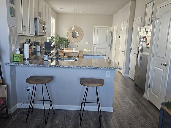 Clean townhouse with mountain views available for rent in August. Situated in a well-planned community with walking trails, tennis and pickleball courts, and two dog parks, this condominium offers two bedrooms and two and a half bathrooms. Boasting 1020 square feet of living space, the layout has been carefully designed to blend functionality with elegance. The stylish kitchen is equipped with top-of-the-line energy-efficient stainless steel appliances and features beautiful granite countertops. The bedroom level includes an oversized washer and dryer for convenience. Throughout the main floor, you'll find durable manufactured hardwood floors. Step outside to enjoy the lovely patio area with a low-maintenance front yard where you can soak in the stunning views of the mountains. This townhome also includes an attached one-car garage as well as an additional parking spot in the back, along with ample street parking. Its central location provides easy access to Boulder, Longmont, Loveland, and Fort Collins for commuters. The rental agreement requires tenants to cover all utilities - water, electricity, cable and internet. Trash removal covered in rent. 12 month lease preferred. Prospective renters must provide the first month's rent along with a $2,200 security deposit upon signing the lease agreement. Pets negotiable.