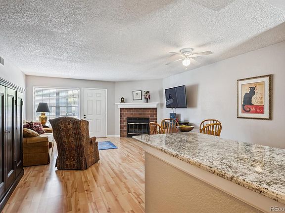 Welcome Home! Rare Ground Floor, End Unit in Otero Ridge Condos with 3 Reserved Parking Spots. No stairs! Feeds to top-rated Littleton Public Schools & Arapahoe HS. Fully updated unit with 2 beds & 2 full baths. Enter to find the extensive low-maintenance laminate hardwood flooring in the living areas & bedrooms. Remodeled kitchen boasts granite counters & tile backsplash, replaced white cabinets, stainless steel appliances & ample counter space. Opens to a great room with dining area & spacious family room; complete with wood-burning fireplace & TV wall mount. The Primary bedroom has a large wall closet & attached, updated full bath. The sizeable second bedroom has a large wall closet & is located just steps from the updated, full hall bath. Convenient in-unit laundry closet comes with W&D. Multiple storage closets inside & one on outdoor covered patio. Back door leads directly to 3 south-facing (less snow!) parking spots. Window coverings throughout & newer furnace. Excellent complex with pool, clubhouse & fitness room – all included in HOA. Part of South Suburban Parks District! Exceptional central Centennial location: short drive to C470 (5 min), Streets of Southglenn (5 min), Arapaho Park, South Suburban Golf Course & wide-ranging shopping/dining/services. Don’t miss out on this rare opportunity!