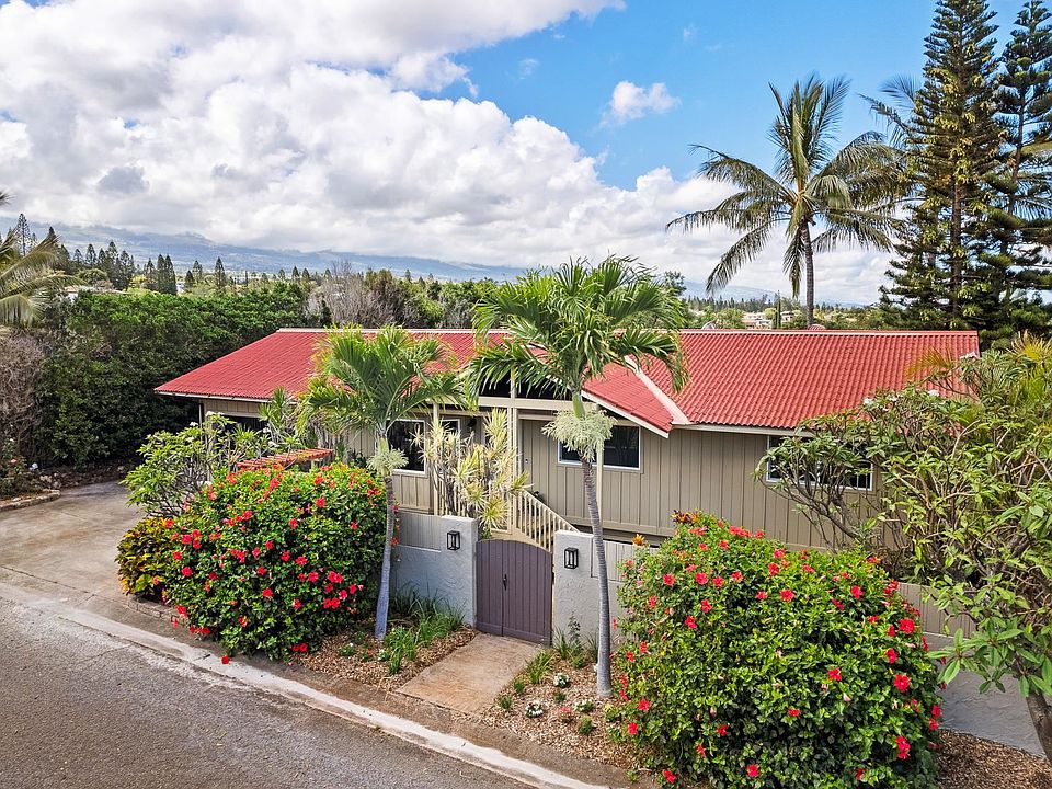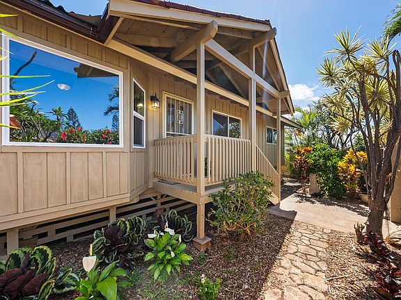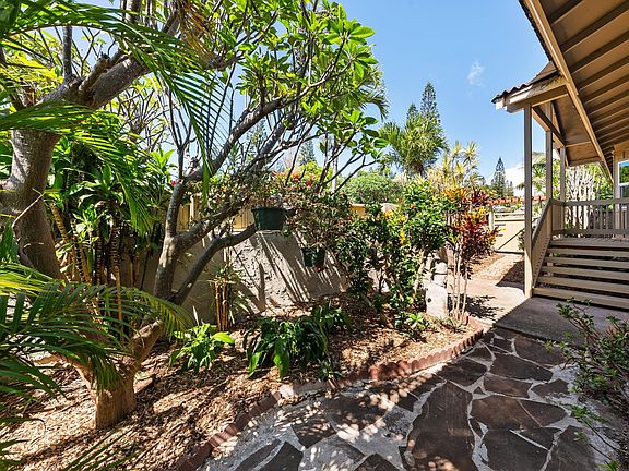A rare opportunity at the heart of Pukalani, This fully renovated 1,750 square ft 3 bedroom 2 bath with cozy 450 square ft Ohana is an idyllic upcountry home for the family. With new oak flooring throughout, the expansive floor plan features a living room and family room with an inviting newly remodeled kitchen at the center. Contemporary solid bamboo cabinetry, granite counter tops, and all new appliances set the stage for culinary creativity, with a barstool seating arrangement open to the living room, and dining area directly adjacent. Natural sunlight fills the living space through wide sliding glass doors opening to the two level lanai. Down the hall, two bedrooms with closet space and fully remodeled bathroom lead to the spacious primary bedroom with ensuite remodeled bathroom, rain style shower, and private sliding glass door accessible to the wide lanai. The fashion of this home speaks to an excellent quality of intentional craftsmanship and care with outstanding functionality for the modern family. As seen from the parking area, a large covered carport opens to a nice laundry room behind contemporary sliding barn door on the left, and tiled mudroom medium area before stepping to the side entry, or straight through the sliders to a cozy cobble stone back patio area. Accessible through a separate walkway from the street side of the home is the fully renovated Ohana with new kitchen, all new finishes, flooring and washer/dryer unit . The single bedroom features a fully renovated bathroom and sliding glass doors opening to private lanai seating area. Both lanai's from the main house and Ohana have separate walkways to the back yard featuring banana, avocado, coffee and citrus trees below the garden terraces. A truly remarkable home, fully remodeled with quality and style, in a spectacular upcountry location. Showings by appointment only. Mahalo!