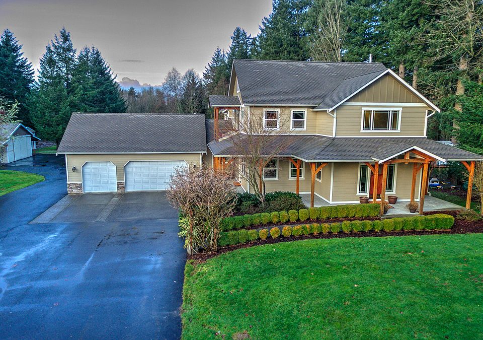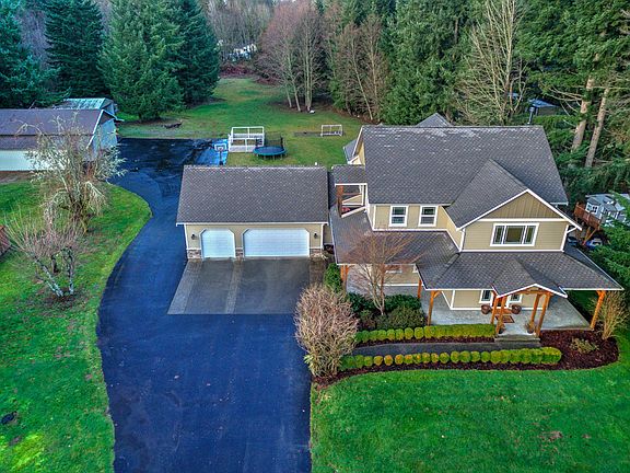 Gorgeous custom builders home with Timberframe porch sits on 3.81 acres. Kitchen has beautiful wood cabinets, granite counters, tile backslash, Stainless app., lg pantry and utility. Open family room with gas fireplace and custom built-ins. Huge windows open to outside & tons of privacy.Large 5 piece master suite. Private deck from Master. Large rec room with attached mechanic garage in basement. Trex deck with glass railing. 48x50 shop. 3 car garage. Fruit trees, RV Park, Close to everything