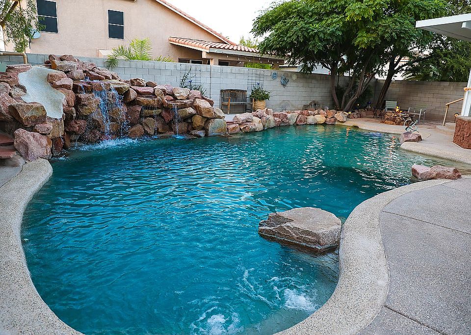 - Pool features: Solar Heat, Waterfall, Beach Entry