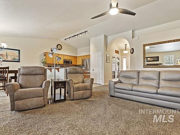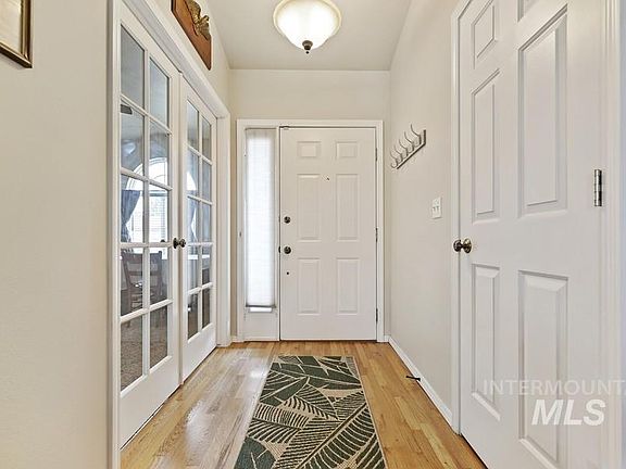 Location is everything and this home is right in the middle of "YES" with amenities and a community park. So many new items: 2015 roof and furnace, 2016 water heater, 2022 gas fireplace insert. Single level with a main floor master, walk-in closet, large kitchen and high ceilings. French doors into your spacious office and great storage throughout. Fully fenced backyard with a shed, garden space, hot tub, covered patio and RV parking. Garage is finished with metal cabinets, organized shelving and a car wash feature. Kitchen has all new stainless appliances and new farm kitchen sink. Very well maintained and loved. Location is close to shopping, Meridian amenities and Chateau park nearby.