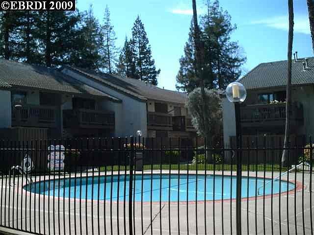 Upper unit, balcony overlooking pool and facing common area. Gas fireplace, fresh interior paint, new carpet, mirrored closet drs, balcony storage, walk-in hall closet, laundry facility, covered assigned & guest parking. Resort-like setting minutes from downtown & conveniently located near BART.