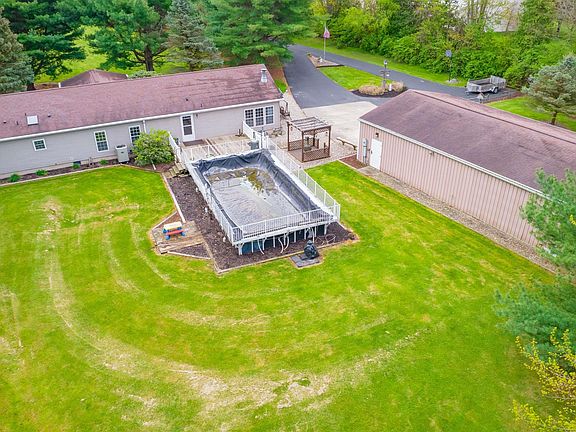 Been looking for your own secluded piece of paradise, that's yet close to everything? HERE IT IS! This 3-bedroom 2.5 bath home is ready for its new owners to call it home. Situated on over 4 acres of secluded splendor you will find this home with over 1800 sf of living space and not 1 but 2 pole buildings for all of your projects. Entering through the back door you are sure to notice the 16x32 above ground pool with 16x20 deck. Inside you will find a half bath and laundry area. Open concept kitchen, family room, breakfast nook area. Kitchen remodel including appliances done in the last 5 years. Family room is complete with wood burning fireplace. Head to the dining room that flows into the living room. On the way check out the massive master suite complete with custom cabinets, jet tub, separate stand-up shower, and walk in closet. The other end of the living room leads to your other 2 bedrooms and the family bathroom complete with tub/shower combo. Head outside where you will find the first of the 2 pole buildings, it is 55x30 with 100-amp service and 220 hook-up 24x30 of this building is a finished & heated workshop area and the 31x30 remainder is unfinished detached garage. Down the driveway upon entering is where you will find the 2nd pole building that is 30x40 and has its own separate electrical meter. It is an unfinished building with concrete floor and complete with 8ft overhang/porch area. Gutters on the home and the large building are less than 5 years old as well. Electric heat pump and central air are 10 years old, along with the well pump, and the roofs on the home and large pole building, and lastly the water heater. Home has 200 amp service. Complete with large asphalt circle driveway and plenty of parking you don't want to miss this home!
