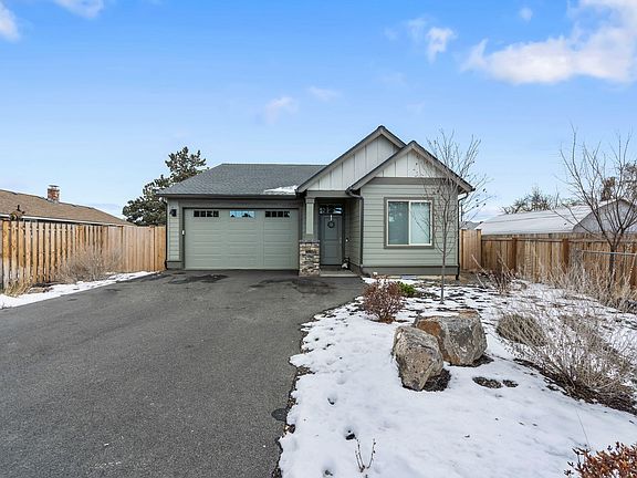 Practically new 3BR/3BA single level home on just over 1/4 acre on a private cul-de-sac in beautiful Redmond, Oregon. Close to shopping, schools, parks & trails. Open floor plan, vaulted ceilings & durable LVP flooring. Kitchen boasts a huge island with under-mount sink and built-in dishwasher, tons of storage, quartz countertops & soft-close drawers. Cozy electric fireplace with shiplap hearth. Space saving barn door access to the utility room with sink & garage access. Large primary BR with walk-in-closet and dual vanity en-suite. Second BR has single vanity en suite.. Third BR has separation from the living space for alternate office space.