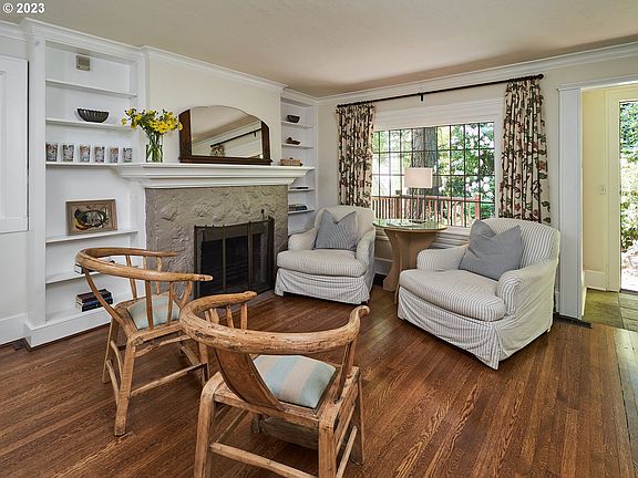Expect the unexpected as you tour this 1894 shingled cottage backdropped against beautiful Governors Park secretly nestled up in Portland Heights. Sunlight streams through leaded windows, French doors open to an expansive deck overlooking the green splendor Oregon is famous for. Wood floors, a sun room, wood-burning fireplace, cozy den, updated kitchen and baths complete the charming details. Uniquely Magical and One of Kind. You really don't want to miss this! [Home Energy Score = 7. HES Report at https://rpt.greenbuildingregistry.com/hes/OR10100403]