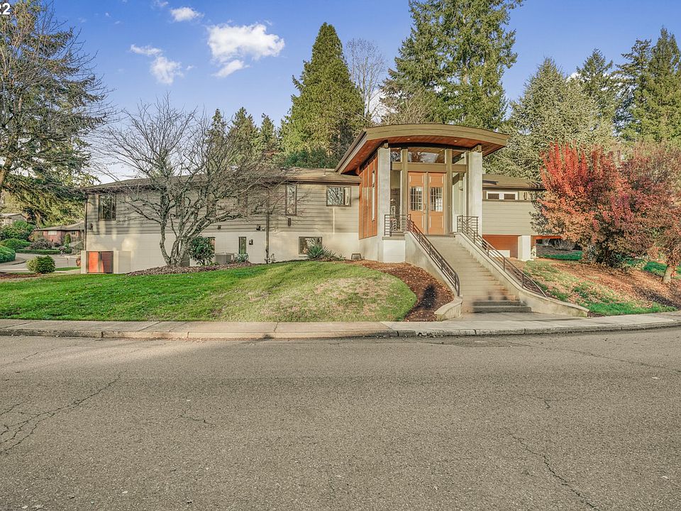 Stunning Mid-Century Modern on one-third acre in Washington County! The corner lot home has Great Room w/ beautiful vaulted ceiling, French glass doors to the balcony & grand fireplace. Gourmet kitchen w/ SS appliances, island, wet bar & granite counters. Tranquil primary suite w/ walk-in closet & private bath. Downstairs the perfect separate living area has bedroom suite w/ walk-in closet, private bath, partial kitchen, laundry & living room w/ fireplace.