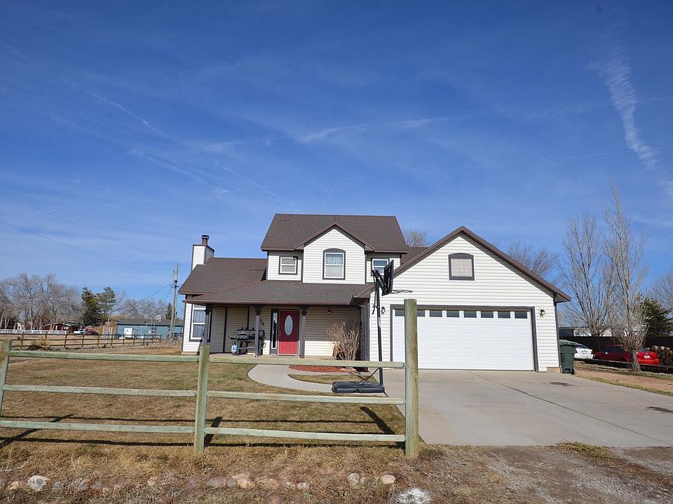 Beautiful, remodeled 2 story country home on over 1/2 acre zoned for horses / animals. Great floorplan with spacious main level master bedroom, kitchen, living room & laundry room. Updated kitchen with subway tile backsplash. Gorgeous newer laminate flooring & carpet and remodeled master bathroom. Mostly fenced yard, seller will leave fencing materials for completion, nice side double gate with RV parking area with electrical outlet. Front Porch is percfect to watch the mountains light up when the sun sets! Must see!
