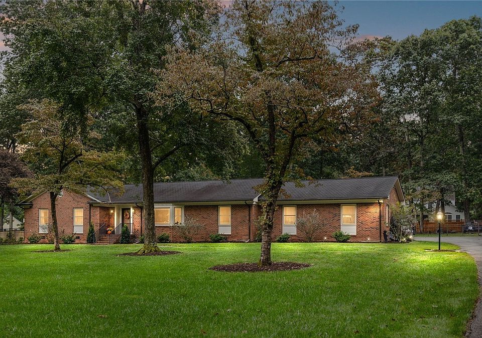 Situated in the sought-after Salisbury neighborhood. This home is a stunning residence exuding classic charm and modern sophistication with this all-brick ranch home. This 3-bedroom, 2.5-bathroom home offers a spacious and thoughtfully designed interior. The gourmet kitchen features quartz countertops, high-end appliances, under-counter lighting, interior cabinet lighting, slow-close cabinets/drawers and a deep farmhouse sink, ideal for culinary enthusiasts. Hardwood floors flow seamlessly throughout the main level, leading to a cozy living area with a fireplace. The primary suite is a serene retreat with a spa-like en-suite bath. Renovated just in the last 2 years includes NEW Windows, Smart Lighting, Smart Fireplace, NEW flooring in living areas, NEW double-sided gas fireplace, and fresh paint. Step outside to a meticulously landscaped yard, herbs in beds close to the house, and fully fenced in the back complete with a patio for outdoor entertaining. Located in a friendly community with convenient access to schools, parks, and amenities, this property encapsulates the essence of comfortable and elegant living in Midlothian, VA. Lake Patrick Henry across the street from home.