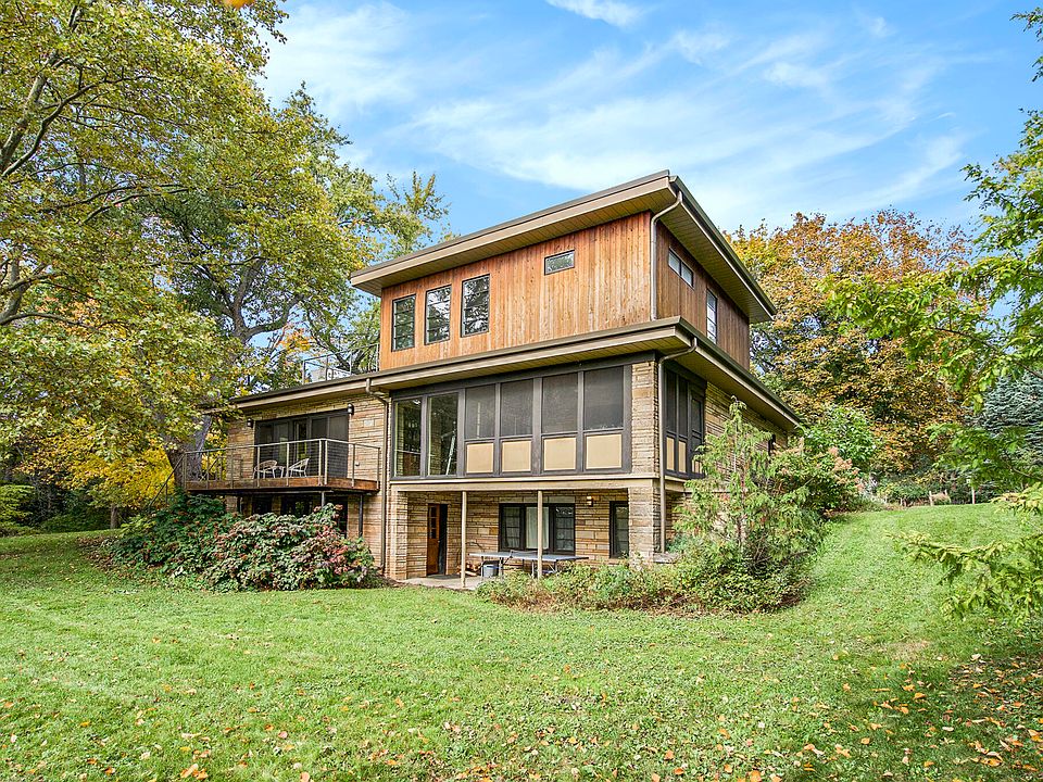 Tucked back far from the road, this magnificent mid-century modern home sits amidst 4.56 acres of beautiful open meadow & mature woods. Wrapped in natural limestone & wood, the home is artfully integrated into its natural topography. Completely updated & reimagined with a 2nd level primary suite addition (2018) featuring luxury bath, 2-sided fireplace, private balcony patio & amazing treetop views of the city. Cook's kitchen w/48'' Wolf range, Sub-Zero fridge, honed granite, slate floors, custom cabinetry, dining nook & door to elevated patio w/grill, perfect for alfresco dining. Clerestory glass block windows bathe the formal dining & living areas with sunlight, a stone fireplace anchors living rm w/double French doors leading to south facing deck. Light-filled study w/leather floors lea leads to charming sitting room flanked by a screened porch. 2 main floor bedrooms w/adjacent powder rm. & full bath w/unique semi-circle glass block shower. A leather bar & knotty pine paneled family rm welcome you to the lower level w/yet another outdoor patio, large bedroom & super cool retro full bath, huge laundry rm. w/dog shower, plus a wine cellar. Serene gardens including a fully fenced raised beds, garden shed, storage shed & chicken coop. Property fully fenced with electric gate. 2 miles from downtown AA.