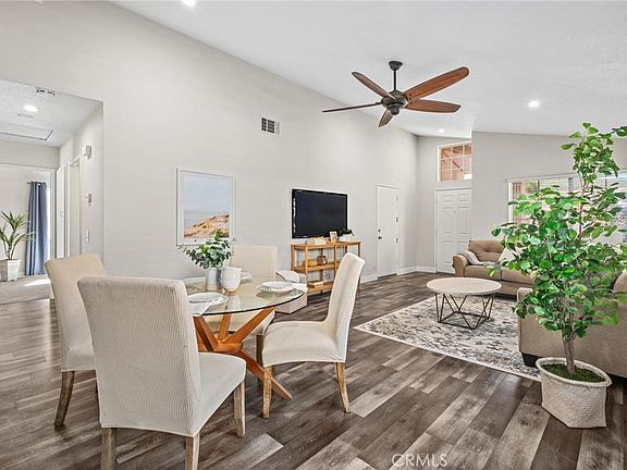 Stunning single-story home in the desirable Spring Haven 55+ community. This turnkey property offers over 1,000 square feet of living space including 2 bedrooms and 2 bathroom. Upon entry you are greeted by wood vinyl plank flooring throughout the main living areas offering a uniform flow and easy maintenance. The vaulted ceilings open up the space to create an airy environment with plenty of natural light beaming through the windows. Entertain effortlessly in this open floor plan including the kitchen boasting stainless steel appliances, quartz counters, and plenty of cabinet space. Both bathrooms have been upgraded with new vanities with quartz counters. The master bedroom has a slider with direct access to the backyard equipped with a covered patio and landscaped to perfection including artificial turf. Enjoy the breathtaking views of the mountains. You do not want to miss this opportunity, schedule your private showing today.
