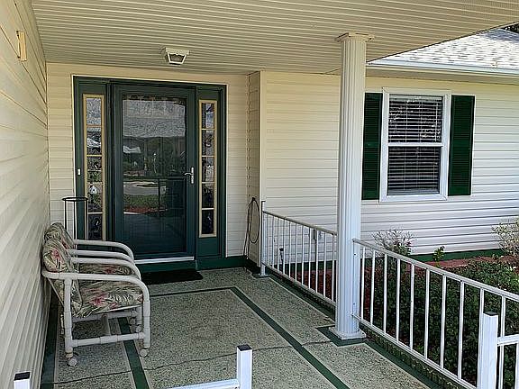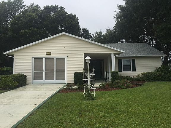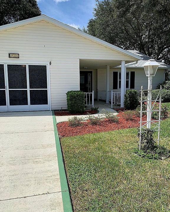 Great home at a GREAT price. As you walk up to the home you'll notice you have a comfortably sized front porch to sit outside. Immediately inside is a foyer with a coat closet. From there you will walk into a large living room that looks out upon your screened patio and woody view. The kitchen features abundant cabinetry and counter space that connects to a sizable and naturally lit dining room. On the other side of the home you'll find the spacious master bedroom that features two large closets along the far wall and private master bath. This house has ample storage as you will notice two linen closets in the hallway between the master bedroom, living room, and guest bedroom. Also in this hallway you will find your roomy guest bath, easily accessible from the living room for your guests. The rear of the home features a large screened in patio you'll enjoy spending your evenings sitting in. The garage is perfect for a handyman as it features a workbench, shelving, a mud sink, and racks to store tools. You'll love this friendly, active, 55+, financially sound, gated community! Amenities include indoor and outdoor pools, tennis, pickleball, bocce, shuffleboard, horseshoes, softball, billiards, fitness room, library, craft room and a large arena & special events. Free boat and RV parking. MORE PICTURES COMING SOON.
