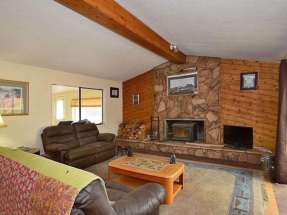Large 5 bedroom 3 bath rancher on acreage with large Shop/Barn. Remodeled in 2015, this home features a new 30-year roof, vinyl windows, attic insulation R38T, new counter tops and flooring, heat pump & A/C for both home & shop, 2 wood burning fireplaces, bay window, and a large Master Suite with walk-in closet. Three-ton heat pump, blown-in attic insulation and bathroom in the Shop enables year-round Shop use in comfort.