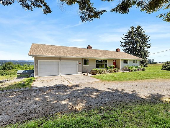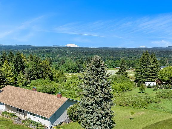 This property has one of the most incredible views in the County. A rare opportunity to be a part of this special Ridgefield neighborhood with panoramic views of Lewis River Valley and 4 mountains. Daylight ranch home with 4174+/- Sq Ft on 2.64 acres. Home provides 2 separate living units. Main level living with 3 bedrooms, 2 full baths, spacious living room, kitchen, laundry and family room with views out most rooms. Fireplace in living room and primary bedrooms. Lower level is a complete living unit featuring 2-3 bedrooms, full kitchen, living room with fireplace, bathroom and washer/dryer. The lower unit has separate exterior access and lockable interior access. New roof and water heaters. Newer windows, furnace, heat pump, and siding. Abundance of storage throughout this home. Conveniently located to restaurants, wineries, retail, and freeway access.