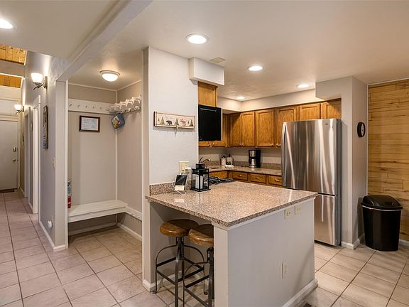 Although listed as a 3 bedroom, this unit can sleep 8-10 people comfortably with the multiple levels & living spaces. Located just across the street from one of Steamboat's bus stops, it currently serves as a vacation rental/retreat where guests can easily enjoy free transportation around the mountain & downtown. Perks for owners in building D include a larger back patio facing a lawn area (vs facing a gravel rd), easy access from the parking lot, & one of the closer units to the large summer pool. Stainless appliances, a gas range, and beautiful marble countertops modernize the kitchen, while exposed wood beams, the gas log stove and planks on the walls give the feel of a comfortable mountain retreat. The main level and upper-level master suites have undergone bathroom updates, while the upper master has been fully enclosed for privacy. Downstairs, the bedroom is set up with bunks and has its own private living room. The complex has recently put on new roofs & restained all buildings.