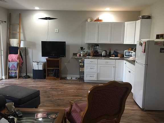 Total square footage is 750 to include living space, clothes closet with shelving, full bathroom, utility room with stack washer/dryer, clothes racks and one shelving unit, lit under stairs, minimal, storage. Walk out to patio facing green space. Built in book shelves. 10 cubic feet refrigerator, counter top French door oven/toaster oven and a removable counter top, double burner cooktop and microwave. Sink with disposal. Private entrance through sliding glass doors with lock or shared entrance through front door at main landing. Lower-level landing entrance door to unit with lock. TV wall mount. No pets, no parties, no smoking. Shared utilities, equally, to include water, electricity, gas and internet. Parking is in driveway if static 25 hours or more, guest parking otherwise. No non-working vehicles allowed at any time. No excess storage allowed, other than what fits in unit. No pets, no parties, no smoking. Landlord will require access for furnace and water heater maintenance with advance notice to tenant. Qualifying tenant will need to be willing to watch and care for landlords small, aging toy Aussie when landlord is unavailable. No excess storage allowed, other than what fits in unit. Month to month lease is available at higher rents. Garage parking is available if owner is away. Maximum vehicles is one. This unit is best suited for one person.