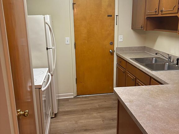 Newly available with new wood flooring. First floor apartment. Comes with covered parking in the rear. Laundry hookups available for an additional fee. Coin laundry available. Tenant pays electric. Great location. No pets or smoking allowed. Tenant pays rent electricity.