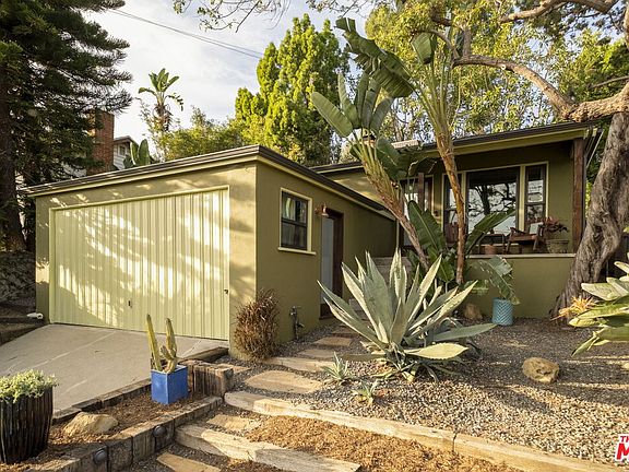 Eagle Rock hillside home with lush landscaping and views. This home built in the Mid-Century features 1950s charm perfectly blended with contemporary conveniences and style. As you approach the home, you are greeted by mature trees, large agaves, palms and an expansive covered front porch. Inside, an oversized picture window blurs the barrier between indoors and nature and floods the living room with light. Hardwood floors, double hung windows, and a heavy wood fireplace mantle create a cozy and comfortable space. The bedrooms have ample closet space and the bathroom was tastefully remodeled. The kitchen also has been updated and is located at the back of the home with easy access to the backyard. Outside, you'll find a magical oasis with verdant plants and well designed built-in seating - the perfect spot to host large dinner parties with friends and family. Tiered up the hillside, are pocketed outdoor spaces to enjoy, a Meyer Lemon tree, and the most majestic Rubber tree. There's also a large flex space - perfect for home office or rec room for movie nights and casual hangs. Convenient to Delevan Drive elementary school. When not enjoying your home, you are close to all the amenities on Eagle Rock and Colorado Blvd, including Walt's Bar, Vidiots, Hilltop Coffee, Bub and Grandma's, Dunsmoor and many more. If you are looking for a tranquil hillside home but still close to fun things, this is your spot!