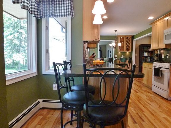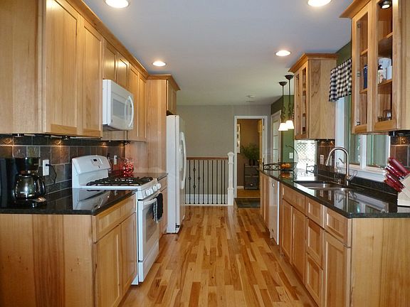BEAUTIFUL all brick low maintenance ranch in the Bullock Creek area sits on a wonderful 1.51 acre fully fenced-in lot! Almost completely remodeled in 2013 with solid hickory floors, high quality hickory cabinets & granite in the kitchen with newer appliances, including minibar & wine rack. The dining area is open to the spacious living room with floor to ceiling vent free gas fireplace with natural stone facing, granite hearth & ceiling fan. The sun room was updated in 2010 with ceramic floor and wood burning stove. Other features include roof 2012, high efficiency on demand water heater & combined boiler/furnace 2013, city water 2000 (assessment paid in full), large barn, chicken coop & enclosed run, above-ground pool with deck and lots of room to build an additional pole barn or garage.