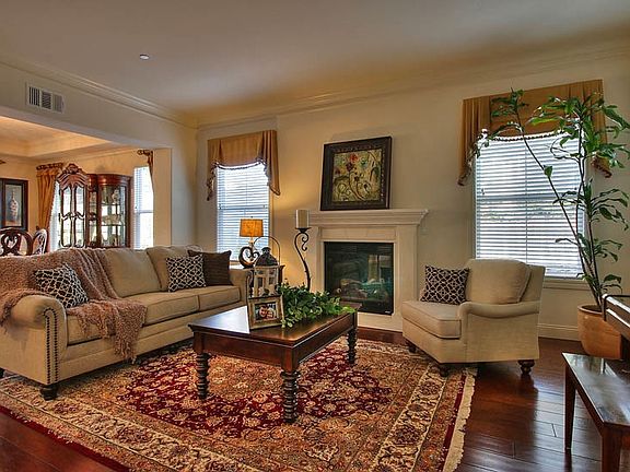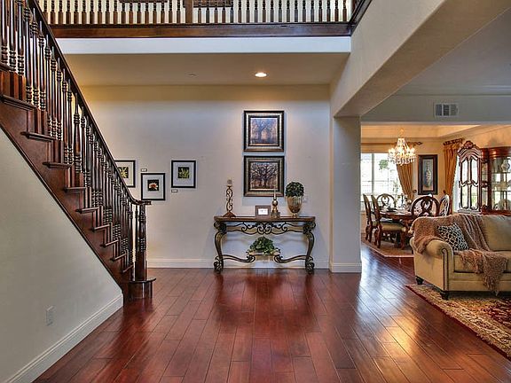 5 Bedrooms + Office + Loft 4.5 Baths 4,886 Sq. Ft. 9,721 Sq. Ft. Lot 3 Car Garage Built in 2005 Double door entrance greets you into this highly upgraded golf course view home Uggraded tile entryway Downstairs den with french doors, double height ceilings, hardwood flooring and custom built-in cabinets and shelves Hardwood flooring extends throughout the first floor Formal living room offers a gas burning fireplace with mantle Formal dining room with custom drapes and chandelier Crown molding in living room and dining room Half bathroom downstairs with pedestal sink and tile flooring Downstairs bedroom suite with recessed lighting, upgraded carpeting and private bathroom Laundry room with tile flooring, utility sink and built-in cabinets Spacious family room complete with built-in cabinets, wet bar, wine refrigerator and gas burning fireplace Amazing kitchen upgraded with espresso stained cabinetry, slab granite counters and center island with sink and pantry. Other features include an oversized built-in refrigerator and stainless steel appliances Separate bar counter seating and breakfast sitting area provide additional functionality to an already spacious kitchen/family room setup Spacious secondary bedrooms with semi-private bathrooms, recessed lighting and generous closet space Balcony off bedroom 4 with french doors and city light views Master suite complete with large walk out balcony overlooking the golf course. Vaulted ceilings and a separate retreat retreat area make this room feel even more spacious Master bathroom upgraded with custom selected tile flooring and surrounds, dual sink vanities, jetted tub, large walk in shower with dual shower heads and large walk in closet with custom organizer system Close to highly regarded schools, parks, shopping and freeways Backyard faces the Dublin Ranch Golf Course and offers view fencing, mature landscaping and grassy area Excellent HOA amenities including tennis, pool and spa