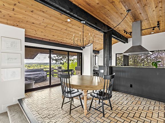 Come see this beautifully updated 4-bed, 3-bath home with walkout basement and brand new roof. Step through the gorgeous solid wood front door into a charming foyer. You will immediately notice the vaulted wood ceilings, brick patterned flooring, and abundant natural light. As you explore the home, you will notice that the main floor features a spacious primary suite with thoughtfully designed en-suite bath, and large clothing closet. The open concept living area allows you to enjoy a stylish kitchen featuring stainless steel appliances, built-in banquette, a custom coffee bar, all overlooking the dining and living area with a beautiful fireplace and excellent views. The walk-out basement offers a second fireplace, large living area, three additional bedrooms, and full bath—ideal for guests or multigenerational living. Modern lighting, great storage, and a layout designed for comfort make this home truly a move-in ready gem.