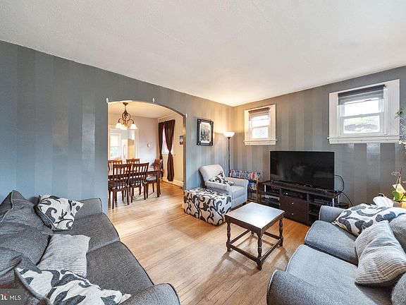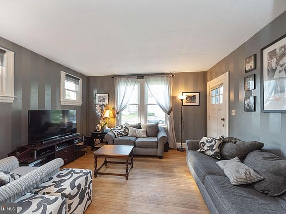 Charming home with front porch on level lot with large driveway and plenty of parking. 2 car Garage has electric and can make a great workshop! Main level has hardwood floors, central a/c and two bedrooms with ceiling fans. Third bedroom on upper level with skylights and window unit for cooling. Large deck overlooks partially fenced yard. Lower level has plenty of storage, flush, laundry, and waterproofed. Replacement windows, newer roof with 50 year shingles, and updated heating and air.