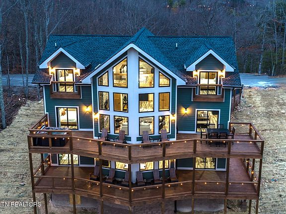 BRAND NEW & FULLY FURNISHED 6 BED CABIN IN THE HEART OF THE HIGHLY DESIRED SMOKY MOUNTAINS. This cabin has sprinkler system installed & an occupancy of 16 guests (per the CO). Walking in the door, you'll be in awe of the T&G ceilings, scissor trusses, floor to ceiling fireplace & windows, and the smoky mountain views towards the Foothills Parkway. The main level features an open concept in the oversized living room, well-appointed & fully-stocked kitchen & dining room, a master suite & bath, and a twin over twin bunk room. Upstairs you'll find a spacious master suite w/ its' own fireplace & stunning bathroom, two more bedrooms, full bathroom & a loft w/ stunning views from the sitting area. Downstairs you'll find a wet bar & open game area, an oversized movie room, workout area, kids play area, double twin over full built-in bunk area & a full bathroom. Out back, the cabin features two expansive decks w/ a hot tub, a dining table & Adirondack chairs great for relaxing & taking in the peaceful, Smoky Mountain views & of the Foothills Parkway.