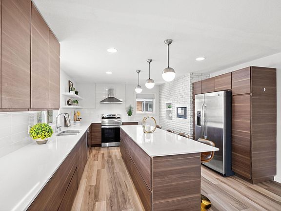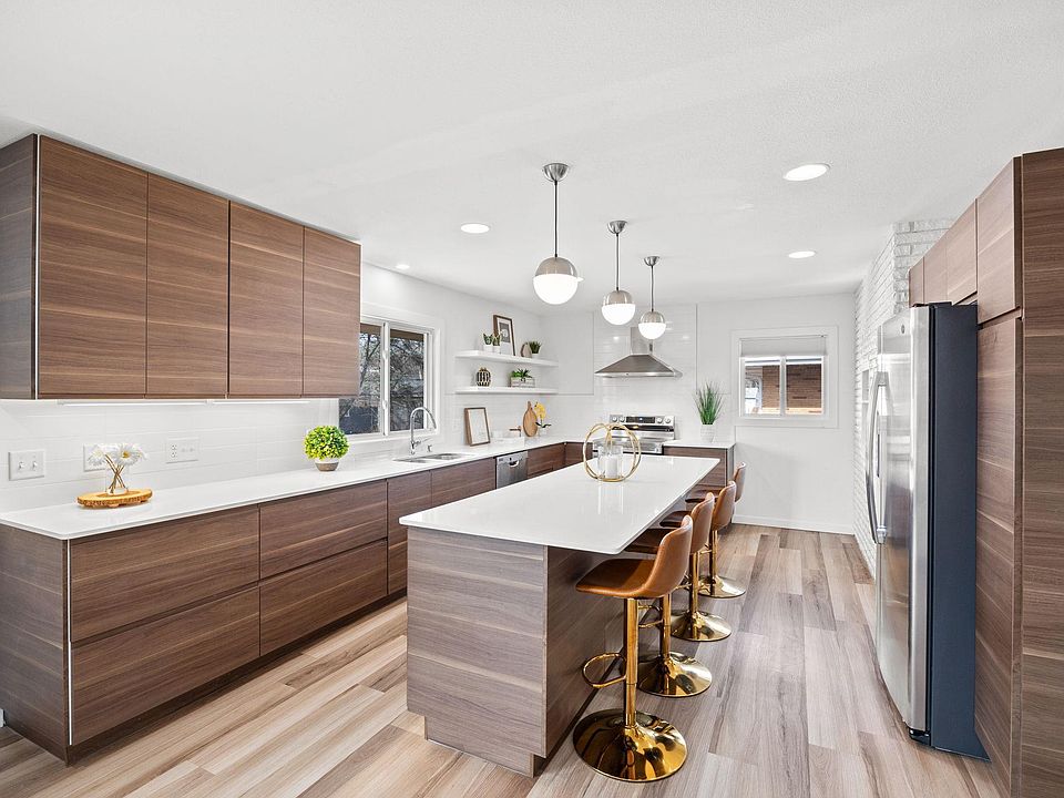 Discover the perfect blend of style and functionality in this stunning walkout rambler! The open-concept kitchen & dining area with oversized island, walnut cabinetry & quartz counters, is a true showstopper. Natural light pours through the updated windows ('19), highlighting the home's timeless design. Relax in the rare owners suite with walk-in shower & double sinks. The LL family room has all the space you need with cozy gas fireplace & backyard views, perfect for unwinding. All three bathrooms are beautifully updated. The laundry room can double as exercise room and leads to a workshop & more storage space. With major updates like a new roof & gutters ('20), furnace ('23), water heater ('22), AC & water softener ('19), this home is move-in ready. Enjoy outdoor living on the front or back patios & take advantage of the fully finished garage with new extra-wide driveway ('24). Just blocks from Sochacki & Theodore Wirth Parks, with off-leash dog park & miles of trails to enjoy. Near top dining spots like Travail Kitchen, shopping & all the amenities. This home truly has it all.