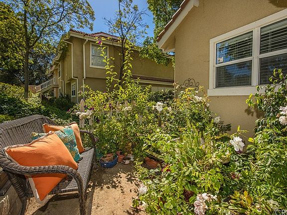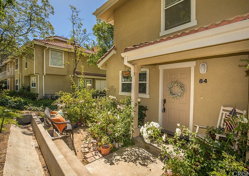 Stunning 2 bedroom, 2 and a half bathroom END UNIT townhome nestled in the tranquil, GATED Canyon Club Community! This stunning home is light and bright with a lovely floor plan and picturesque views from both the private patio and master bedroom! The kitchen looks out onto the spacious dining area and family room which is complete with custom stone hearth and plenty of natural light! The large windows, neutral colors and wood like tile floors accent just about any type of decor and make this home a true showplace! The upstairs master is incredibly private and spacious and even offers dual sinks in the en suite master bathroom. The secondary bedroom is also very private with it's own private bathroom, complete with tub and shower and peacefully gazes over this beautiful, quaint community! This home also includes an indoor, stackable washer and dryer, detached single car garage and numbered parking spot in addition to ample guest parking! Just one block from the 118 freeway, walking distance to the new Crunch Fitness Center, shopping, restaurants and so much more! Don't wait to view this home...it's sure to sell fast!