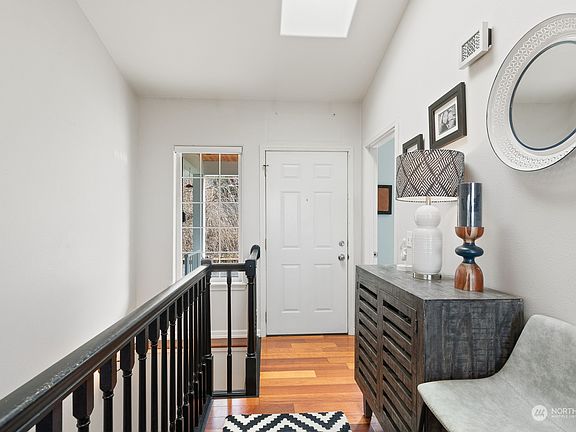 Enjoy captivating views of Bellingham Bay from this delightful Alabama Hill home. Nestled among the trees along the Inter Urban Trail this home offers the quintessential Bellingham lifestyle. Newly renovated chef's kitchen with high end finishes, Brazilian cherry wood floors, black stainless appliances and quarts countertops. Large bay windows welcome flowing natural light throughout the great room with cozy fireplace. Main floor primary suite with attached ensuite bathroom and walk in closet. Spacious finished daylight basement with large living space, two additional bedrooms and full bathroom and walk out patio. Well cared for with 2023 roof and a fresh coat of paint. Unmatched opportunity to get outside and explore from your doorstep!