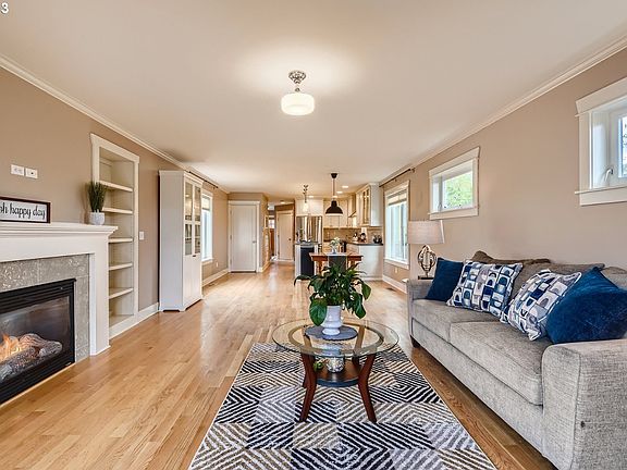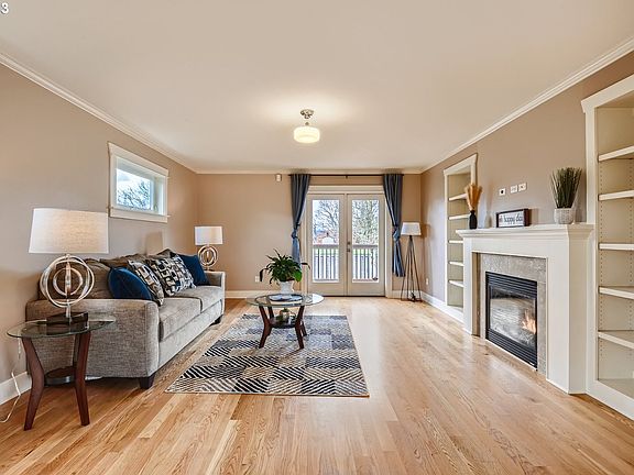 Fall in love with this well constructed newer home (views of Mt. Tabor). Hardwood floors lead into the great room natural daylight. Enjoy your convection oven with 5-burner gas range with griddle, stainless steel hood vent and 7-foot island with slab granite. Cozy up near your gas fireplace flanked by built-in book shelves. French doors open to a deck overlooking the fully-fenced backyard and community garden. Relax on the private backyard patio surrounded by David Austin roses and sunflowers. [Home Energy Score = 9. HES Report at https://rpt.greenbuildingregistry.com/hes/OR10213273]