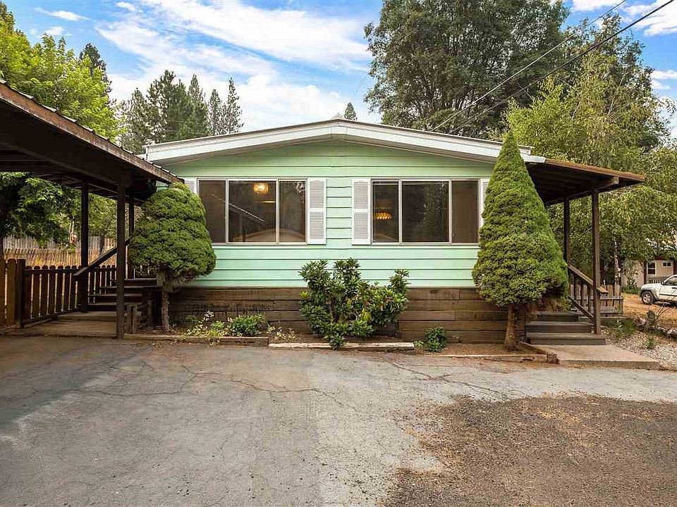 Neat as a pin double-wide mobile with expanded carport at the end of sleepy Warmcastle Village Mobile Park. Located just outside of McCloud proper, on the way to Lake McCloud Reservoir, tucked in nature's best kept secret: Squaw Valley area. Make quick neighbors among this helpful bunch of established residents, find peace & quiet situated in the second to last unit. Coin-operated laundry and minimal storage services available for park residents, although unit contains washer & dryer appliances included in this sale. Detached storage sheds, and plenty of outdoor spots to stow away gardening and seasonal tools. Low-maintenance landscaping with mature trees for shade and enjoyment off the two long porch decks. Monthly rent of $350 incl. road maint., well water, septic, refuse, laundry, storage, and park security. Within minutes from amenities and historic downtown McCloud; a stone's throw from McCloud Golf Course, popular waterfalls along the McCloud River and, among limitless recreation, the Mt. Shasta Ski Park! Your answer to a slow & easy, affordable lifestyle. **Buyer to complete Park application prior to Escrow**