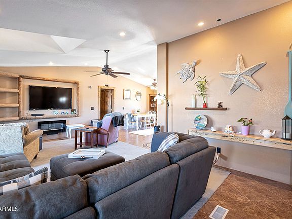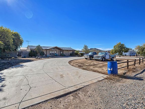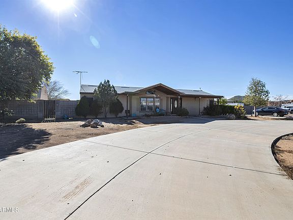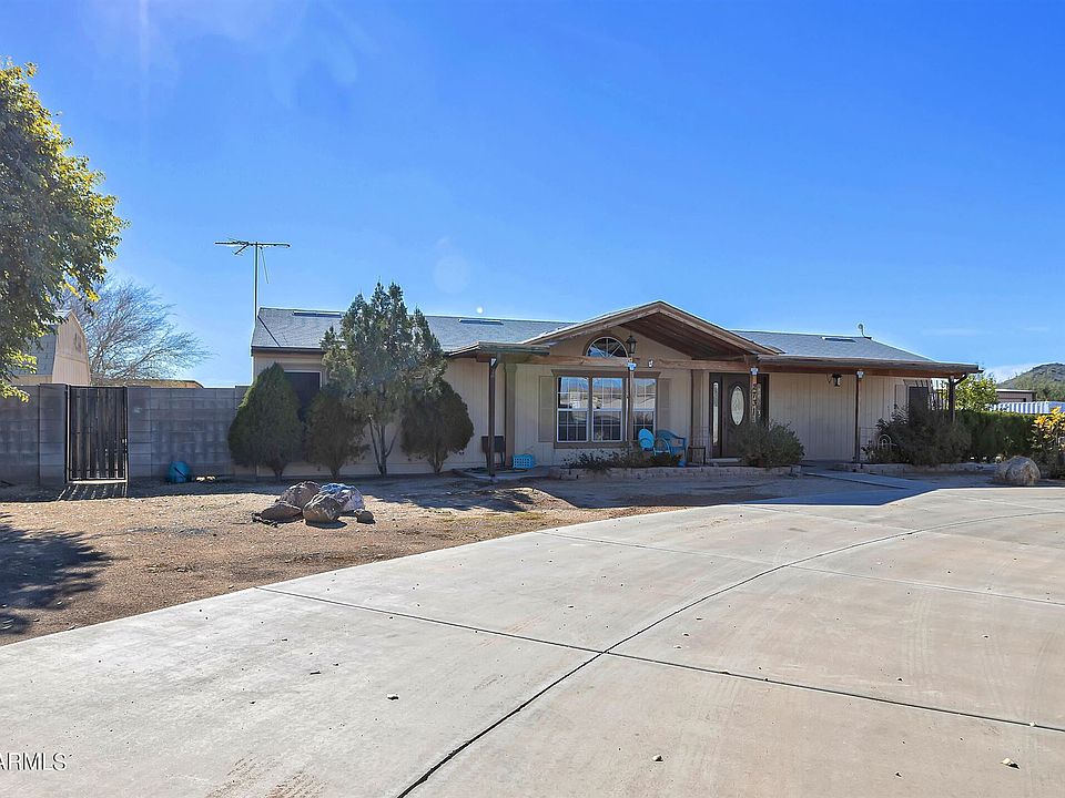 Property being sold AS IS. Beautiful home with mountain views and lots of extras! One acre lot with circular drive, plenty of parking and covered patios. Interior remodel 2012 which included tile throughout, beautiful master and guest bathroom updates, new kitchen including dishwasher and microwave with bar top island. Separate 40x72 steel building with three 16x12 roll up doors with separate 200 amp service, water and air lines throughout, 12x20 mezzanine, upstairs office, and downstairs kitchenette. 18x18 horse shade and 10x20 raised garden bed.