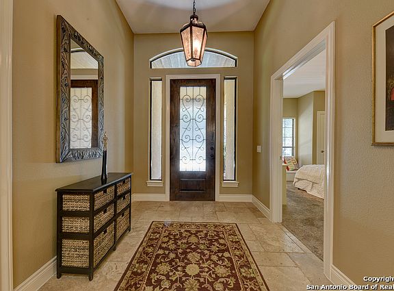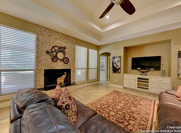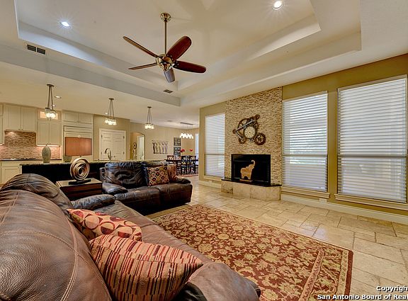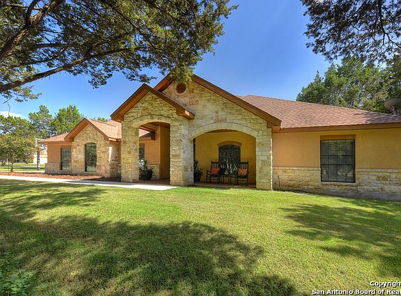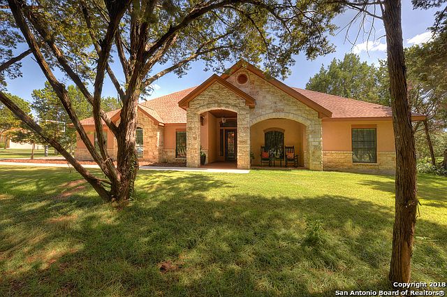 Texas Hill Country custom living at its finest whether you prefer entertaining or spending summertime poolside this home in prestigious Rockwall Ranch has you covered. Gourmet eat-in kitchen w/built-in frig gas range & oversized island. Master suite features custom built ins and walk in shower. 2nd living area has kitchen, walk in closet and outside access perfect inlaw suite. Covered back patio with fireplace TV & complete outdoor kitchen. Garage fits 2 vehicles & golf cart Home is wheelchair accessible.