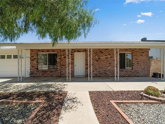 Welcome to 27312 Embassy Street! The exterior eaves, columns, and front door have all been freshly painted to provide stunning curb appeal. This property resides in the 55+ senior community of Sun City, and is in close proximity to shopping centers and restaurants. The front yard features a mature shade tree with low maintenance landscaping throughout. Step inside to your formal living room off the entry, and continue in to your kitchen with an included refrigerator. Off the kitchen, will be the family room along with the back sliding door to the spacious screened sunroom! Throughout the remainder of the home, you will find the two bedrooms, two bathrooms, and mirrored closets. Enjoy all that the massive backyard has to offer, which is thoughtfully landscaped with palm trees, hedges, a patio cover, and no rear neighbor! The two car garage has just been cleaned up and has the laundry hookups inside. Located in a low tax area and in the sun city civic association, this amazing property comes with all of the potential to make it your own. Nearby to shopping centers and the 215-freeway which makes easy access to the beautiful Temecula wineries, lakes, fishing, San Diego, and Los Angeles. HOA amenities include access to pool, spa/hot tub and outdoor cooking area. Come schedule your showing today!