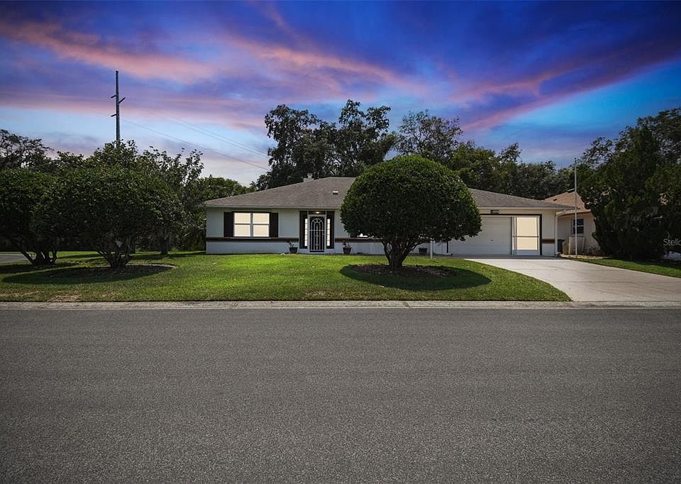 In the heart of Highland Lakes, a Gated Community for those 55+ and nestled amidst the tranquil embrace of nature's splendor, a wonderful house awaits a new owner. This three-bedroom, two-bathroom home has only had ONE OWNER who has loved, maintained and cared for this house since it was built. Upon entering the residence, one immediately notices its practical and spacious, split floor plan. Your eyes are drawn to the Great Room and with a wood-burning fireplace—a traditional gathering place of warmth and for family memories. In the large, Eat-In Kitchen, culinary adventures await you. The breakfast bar is perfect for all the Little Ones to line up to watch what splendor is unfolding in the kitchen. The master bedroom is pure tranquility with it’s openness, attached reading area and access to the Florida Room and Lanai. The Master Bathroom has dual sinks, a stand up shower and a Garden Tub for your personal relaxation. Stepping out from the Great Room is an extraordinary 230-square-foot Florida Room which is the perfect place to enjoy the view of the Large Pond, flowing trees and all that Nature brings to your back door. There is an amply sized, two-car garage which has sliding screen doors for even more outside enjoyment during those beautiful Florida Fall and Spring months. The roof was installed in 2009 and the HVAC system was installed in 2010. Highland Lakes, a destination for those aged 55+, offers a wealth of amenities to further enhance your experience. Within the confines of this sprawling community, the Clubhouse stands as its center, host to countless social gatherings and stimulating conversations. There is also a Heated Indoor Swimming Pool as well as an Outdoor Community Pool. A sampling of some of the other amenities include a Fitness Center and both Tennis and Pickleball courts, meeting and card rooms, Nature Trails, and a Softball Complex. Last but definitely not least, the community offers a fenced RV/boat storage lot with over 250 spaces. In Highland Lakes, discovery and adventure intertwine with the everyday. Step inside, and let the journey begin.