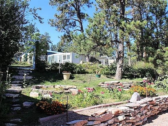 Lots of space on this 2 Acre lot! Located just a few miles from Hot Springs, this 1985 Mobile home is in excellent condition. The open floor plan in the living, dining and kitchen area, including a vaulted ceiling, gives it an inviting feeling. Two new additions were built in 2005 that added a large walk-in pantry (could easily be made into a third bedroom), and the housing for the solar utilities, and the hot water heater. The master suite and second bedroom both have walk-in closets. The current owner has begun replacing the carpets with laminate flooring and if not finished the supplies will be there to finish the work. The detached garage with drive under carport has a room above it to be used as storage also. There are other numerous buildings which currently are used as green houses, workshops, and chicken coup. The back yard has beautiful flowers, fruit trees, a pond, garden area which is all fenced in due to the turkeys, deer and other wildlife which run through these hills.