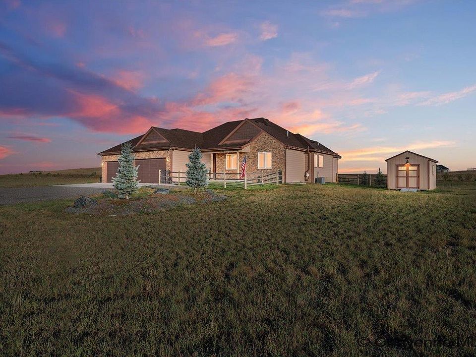Welcome to this beautifully designed 5 bedroom, 3 bathroom home offering the perfect blend of comfort, style, and functionality. The heart of the home is the eat-in kitchen, complete with gleaming Granite countertops, hardwood floors, and stainless-steel appliances — ideal for both everyday living and entertaining. The main floor boasts a luxurious primary suite featuring a spa-like en-suite bathroom and generous walk-in closets. You’ll also enjoy the convenience of main floor laundry. The open and inviting floor plan is enhanced by two cozy gas fireplaces and a finished lower level complete with a wet bar—perfect for hosting gatherings or relaxing evenings at home. Car enthusiasts and hobbyists alike will appreciate the impressive 4-car garage, providing ample space for vehicles, storage, and projects. Outside, enjoy the peaceful tree-lined setting with open space views, along with a living snow fence that adds privacy and future wind protection. Tree lines are on a drip system. Home includes a Generac whole house generator. Low HOA includes Fiber gigabit internet. This home truly has it all—space, upgrades, and a location that balances tranquility with accessibility.