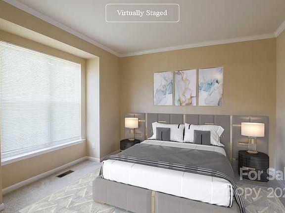 This Charlotte two-story home with accent shutters offers 4 bedrooms, 2.5 bathrooms and a two-car garage is waiting for you! The kitchen boasts generous counter space as well as a breakfast nook and included appliances, making cooking and entertaining a delight. Discover a bright interior with neutral hardwood/laminate floors and plush carpet in all the right places. The main bedroom boasts a private ensuite bathroom and walk-in closet. Other bedrooms offer plush carpet, ceiling fans and sizable closets. Entertain on the gorgeous deck and enjoy your large lush backyard landscape, perfect for barbecues. Don't wait! Makes this beautiful home yours today! This home has been Virtually Staged to illustrate its potential.