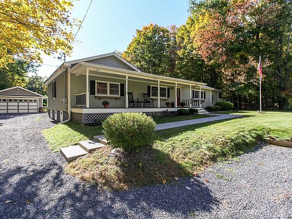 Located just minutes from the center of Pine Plains, this meticulously renovated house is move-in ready. Enter the house from the roomy, rocking chair front porch into the large, well-equipped kitchen/dining area. High-end kitchen features include gas range with double ovens, pot filler and a chef's island with granite baker's station, downdraft grill and additional burners. The expansive master bedroom and bathroom with marble shower, added in 2013, has vaulted ceiling and opens onto a generous size deck. From the kitchen, the hallway with full bath and 3 additional bedrooms leads to the large, open living room featuring gas fireplace, vaulted wood ceiling, skylights and doorway onto to the large, multi-tiered back deck with built-in seating, outdoor shower and plenty of room for entertaining or enjoying the sunshine. The basement level has den, office, laundry room, mechanical room with 6-zone boiler and dual oil tanks, and a fully equipped gym with sauna. The cleared, expansive, level back yard area encompasses a pergola draped with trumpet vine, new equipment shed, fenced-in, raised garden beds. The two car garage was added in 2008. Indoor/outdoor whole house stereo speaker system. Anderson, new construction, tilt wash windows. HardiPlank siding on house and garage. Septic system replaced in 2015. Walking distance to the center of Pine Plains, Stissing Mountain and Lake and a short drive to Wilcox Park, Rhinebeck, Red Hook and The Taconic State Parkway, make this impeccably maintained and renovated property a rare find.