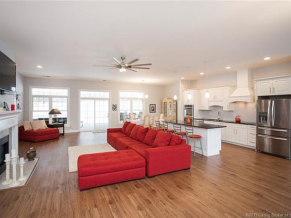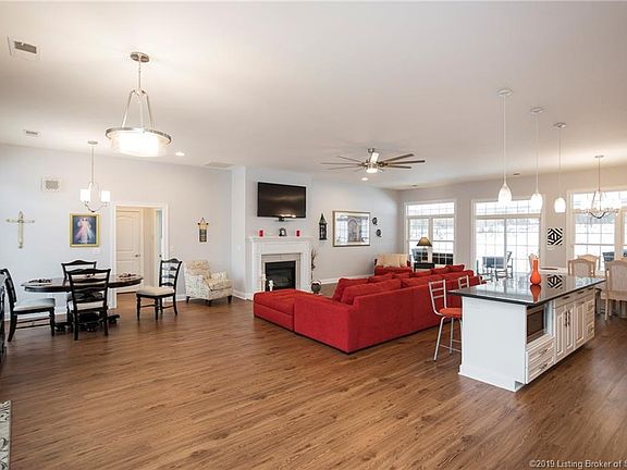 Beautiful, large, open, ranch style home across the street and sitting above the serine lake at the end of a cul-de-sac. Walk in the front door to a 28 foot by 36 foot open great room. It encompasses the living, dining and kitchen areas and has front window views of the lake. It has a tall ceiling and a ceiling fan. The living or family room area has a cozy gas burning fireplace. The up-scale kitchen has an island ( which separates the kitchen area from the living area ), custom cabinets, solid surface countertops, stainless steel appliances, double wall ovens (one convection), dishwasher, refrigerator, smooth top cooktop and wood hood. And there is still plenty of space for your dining area. Just off of the great room, at the back of the home is a 35 foot by 14 foot covered patio for entertainment or relaxation.You can enjoy watching wild life at the front or back of this home. Large and separate bedrooms. This home is gorgeous and only 2 years old.