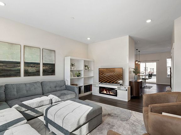 Step into effortless elegance in this stunning, barely one-year-old townhome offering three levels of sharp, light-filled living space. Showcasing today's most desired finishes, you'll love the fresh, modern decor, abundant natural light, and striking Prairie-style staircase. The heart of the home is an entertainer's dream - a gleaming white quartz kitchen with high-end stainless steel appliances, crisp white Shaker cabinetry, a statement island with seating and pendant lighting, open-sided iron fixtures, and pantry. Enjoy meals in the spacious dining area with glass doors leading to a private elevated deck that overlooks a serene conservancy. Sophisticated LVT flooring flows throughout, complemented by 2" white wood blinds and recessed lighting. The expansive primary suite features a generous walk-in closet and sharp ensuite bath with dual Shaker vanity, oversized shower wrapped in striated horizontal tile, and private water closet. Two additional bedrooms offer ample space, natural light, and great closets. Downstairs, find a flexible den/playroom/home office plus a large laundry room - all with daylight windows. The attached two-car garage adds everyday convenience. All this, nestled in a thoughtfully planned community with beautiful paver gathering area, walking trails, lush natural landscaping, scenic trails, and a huge park just steps away. Close to top-rated schools, shopping, parks, and commuter routes.Truly turnkey and move-in ready - this is elevated townhome living at its best!