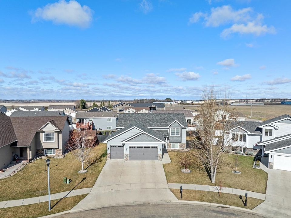 Welcome to Eagles Landing! This beautiful neighborhood features sidewalks, walking/biking paths, easy access to the bypass, proximity to shopping, banking, and restaurants, and is just a stone's throw from Minot's newest high school. The split foyer home is a dream that features four bedrooms, three bathrooms, and over 2,400 square feet. When you approach the home, you'll appreciate the tasteful landscaping, modern design, and great location. When you first enter the home, you're welcomed into the foyer with access to the heated three stall garage. The garage has a large screen to cover the two-stall door, access to the yard, and plenty of room for storage.  The upstairs is the heart of the home, and features the open concept kitchen, dining and living areas. Off the dining room is the large backyard with an elevated/covered porch, a concrete patio, and a 6ft privacy fence. There are two bedrooms on the main floor, one of which is the primary. The primary bedroom features an attached bathroom with a tiled shower and a large walk in closet. The other bedroom is a similar size to the primary, and there is also a shared hallway bathroom. There are an additional two bedrooms downstairs, and another shared bath. There is an additional living space downstairs that features an included surround sound system. There is plenty of storage downstairs, including the large utility/laundry room. Don't miss out on your opportunity to own in Eagle's Landing, call your favorite agent today to arrange a showing.