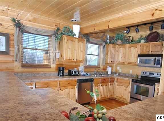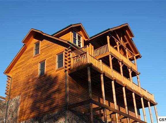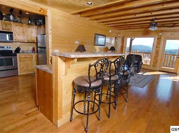 Are you the outdoorsy type or do you prefer indoor pleasures? Regardless of your answer, a little balance in life is good. Mountain Tops & Movies provides the perfect setting to fine tune the balance between the tree huggers and the couch potatoes in any group! Mountain Tops & Movies, a spacious Pigeon Forge cabin spanning two levels, accommodates up to 12 people, making this the perfect family getaway or vacation spot for a friend's weekend in the mountains! Get everyone together to enjoy a movie in the home theater room, equipped with a 9' digital home theater system! After taking in a movie, enjoy the beautiful mountain views from one of the two private covered decks or take a hike and see nature up close and personal. When you return, relax those sore muscles in the country porch rockers or soak in the hot tub while enjoying the fresh mountain air. With first-class amenities including a 46 LCD TV in the great room, a 40 LCD TV in the game room, free high-speed Internet access, two Jacuzzi tubs, two master suites, a pool table, air hockey table, Wii gaming system, electronic dartboard, and a stand-up video arcade game, you will have no shortage of entertainment right inside your cabin. Located in Wears Valley, Mountain Tops & Movies is close to the attractions and entertainment of Pigeon Forge and Gatlinburg and also includes access to an outdoor swimming pool with a gorgeous view. So gather your nature-loving friends as well as your cinema buff friends and head for the hills of East Tennessee. Both groups are sure to have a fabulous time sharing their individual passions and enjoying Mountain Tops & Movies! Rental history through 8/31/15 is $43,522.